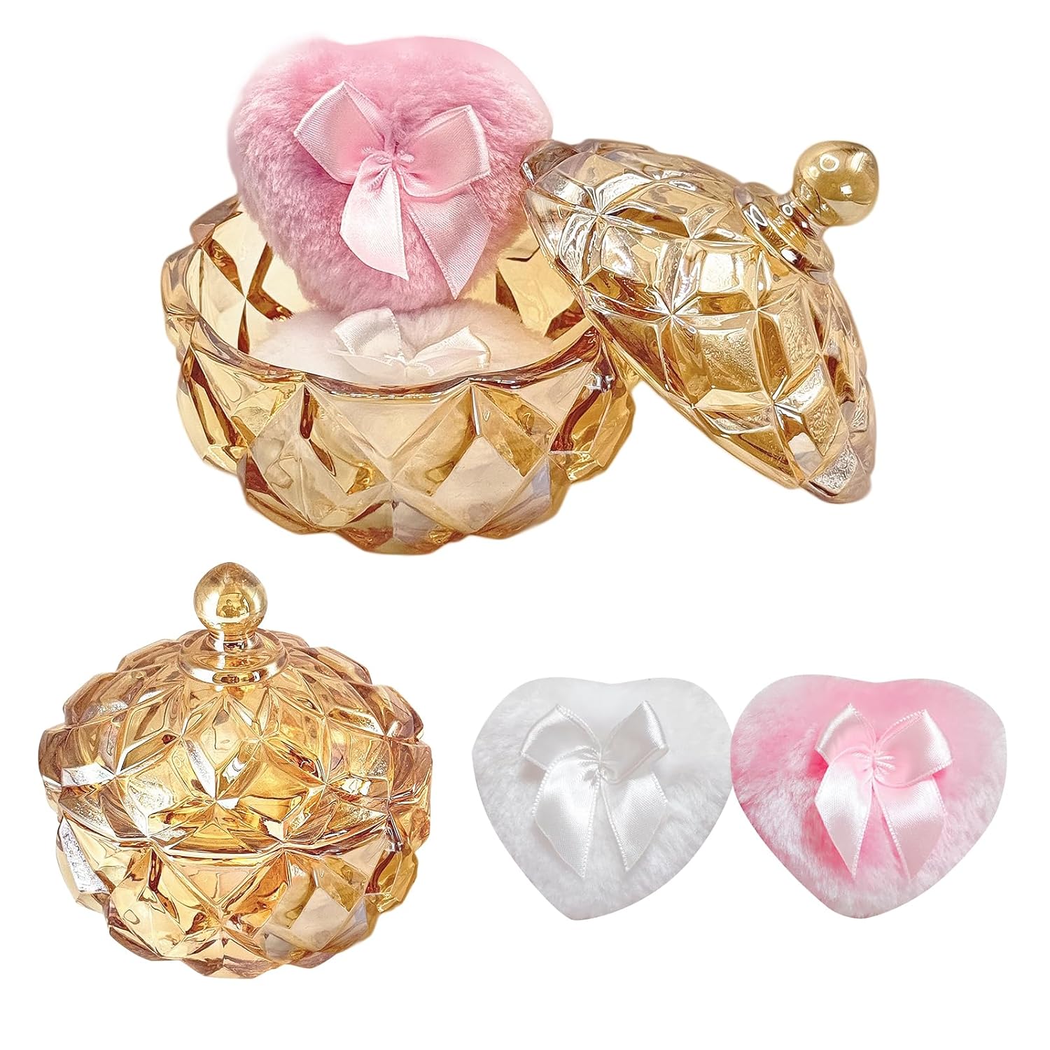 - 【You will get】 1 x Glass Powder Puff Case, reusable one white powder puff and one pink powder puff. Made of clear glass, both aesthetic and ceremonial, suitable for gift or vanity table decoration. Powder puffs are soft in texture, reusable, wet and dry