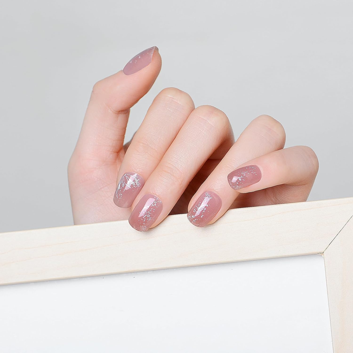 - LIGHT PINK WITH GLITTER BUTTERFLY DESIGN SEMI CURED GEL NAIL STRIPS - Each stylish box includes 1 sheet with 10 sizes, totaling 20 strips in a unique blend of Light Pink With Glitter Butterfly hues, embodying sophistication and cuteness. Additionally, it provides adaptability with 2 strips per size, catering to various nail lengths.