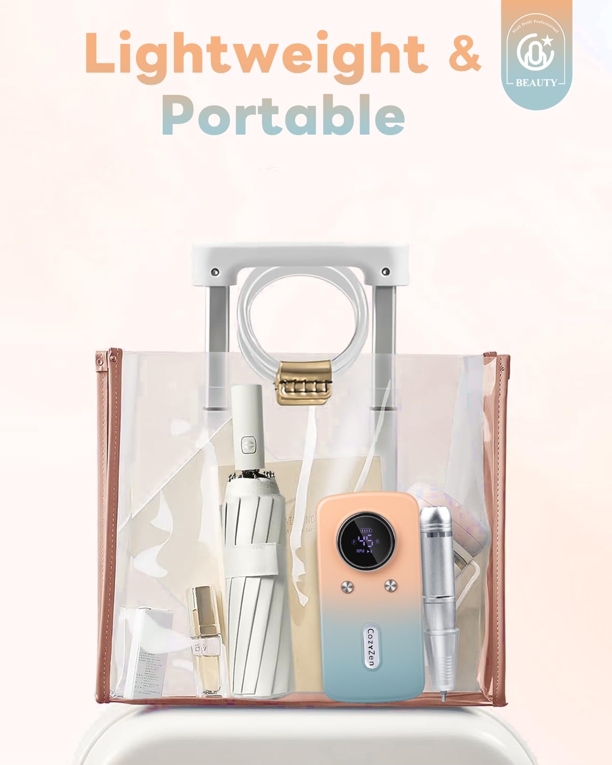 CozyZen Cordless Nail Drill Professional: 45000 RPM Rechargeable Electric Nail File Kit, Portable & Low Noise for Acrylic, Gel Nails, Manicure & Pedicure - Salon & Home Use