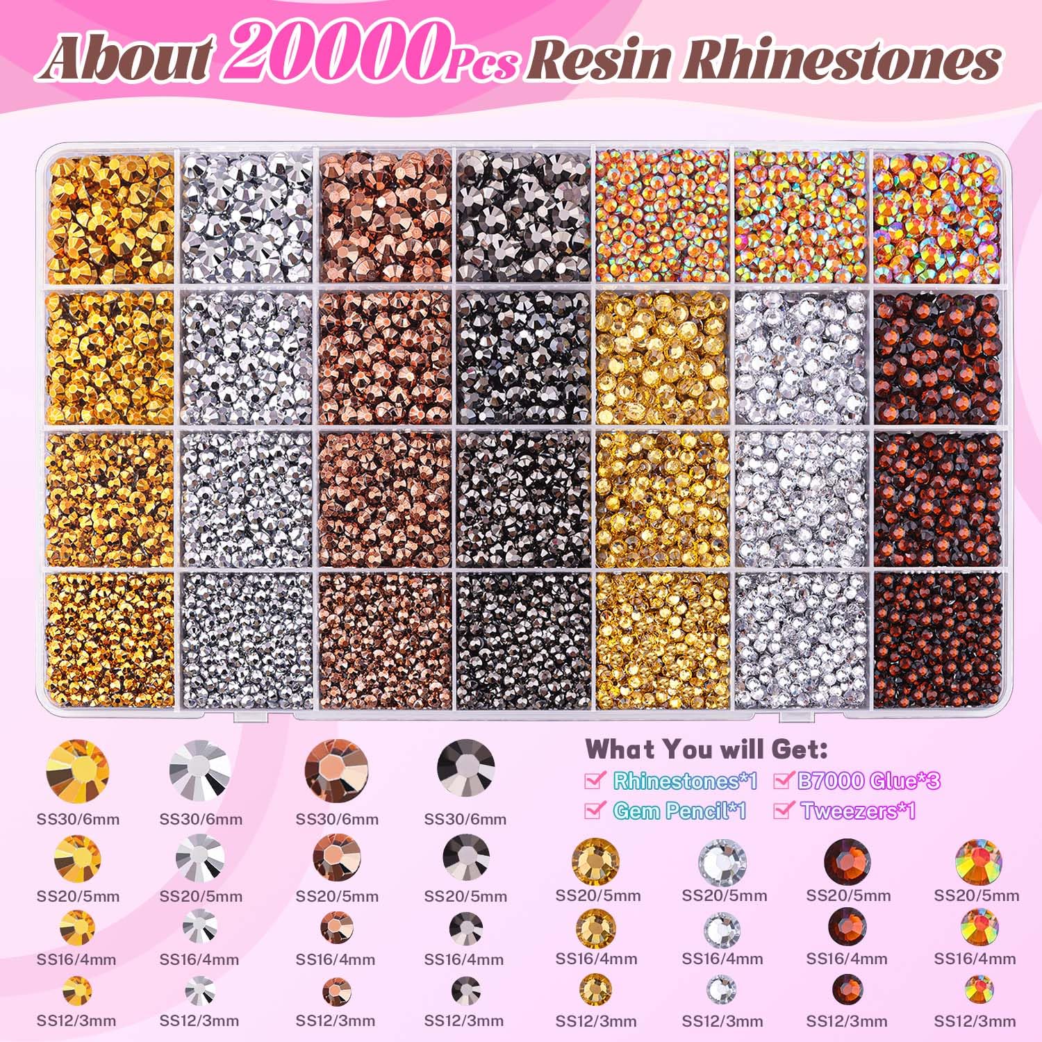 20000Pcs Metallic Rhinestones for Bedazzling with 3Pcs B7000 Jewelry Glue, Resin Rhinestones for Crafting Crafts,Bedazzler Kit Flatback Gems for Clothing Shoes Tumblers Nail Art