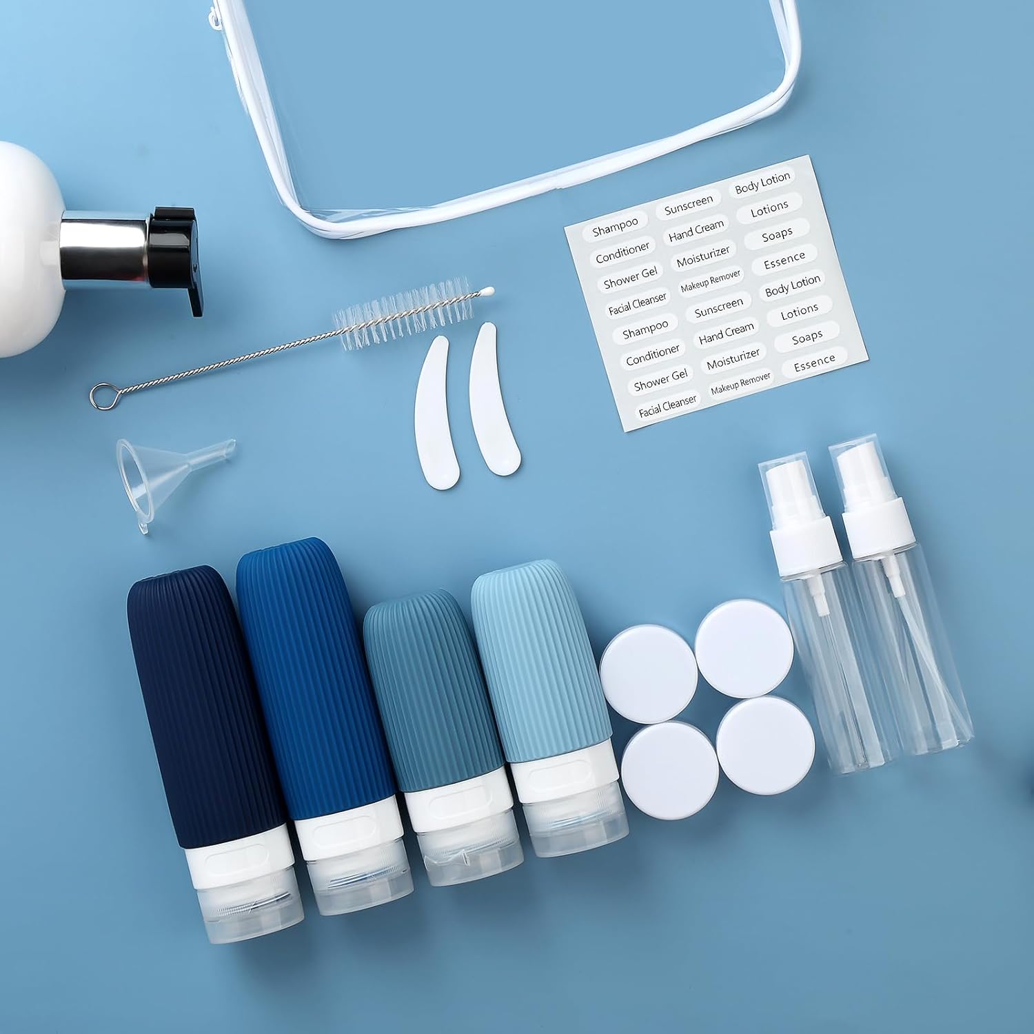16 Pack Travel Bottles Set, TSA Approved Leak Proof Silicone Squeezable Containers for Toiletries, Refillable Travel Accessories for Conditioner, Shampoo, Lotion & Body Wash Accessories