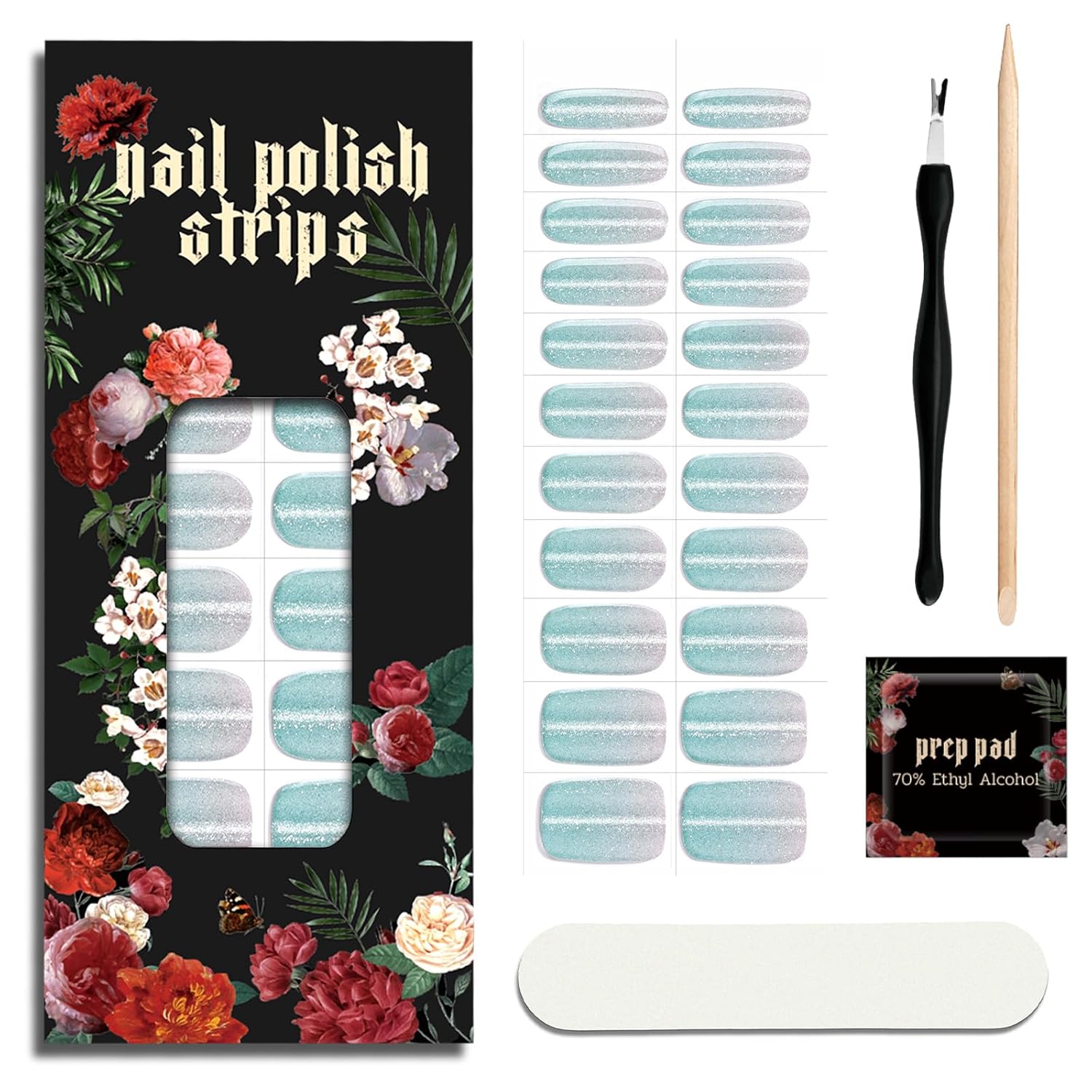 - New Technology - Compared with traditional nail polish and semi-cured gel nail strips, Our nail strips are pre-cured with glossy 3D nails effect. No need for uv light and drying time, these nail polish strips are thinner and more breathable, providing better protection for your nails. The gel nail strips is made of 100% cosmetic ingredients without any toxic or harmful materials.