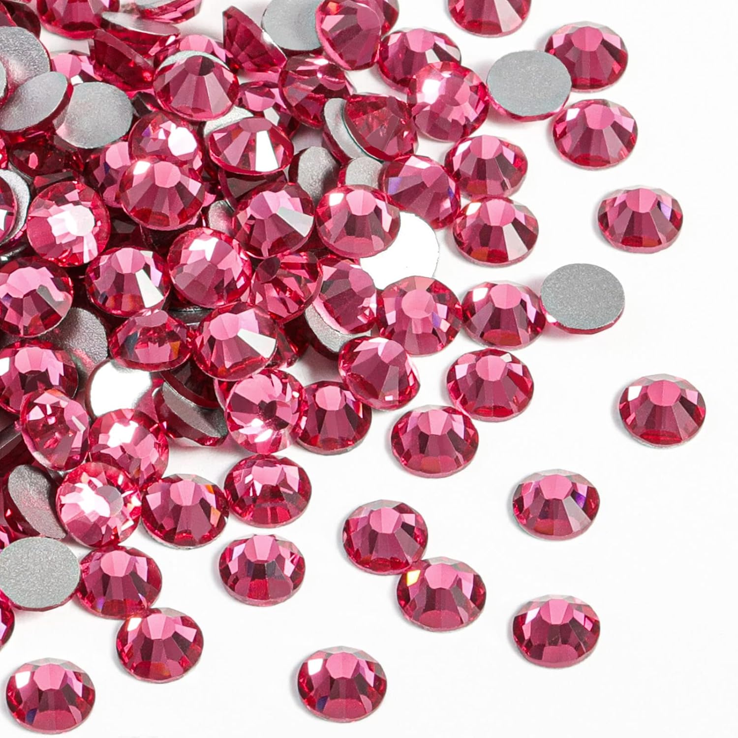 Beadsland 144pcs Flat Back Crystal Rhinestones Round Gems for Nail Art and Craft Glue Fix, Rose, SS40, 8.4-8.7mm