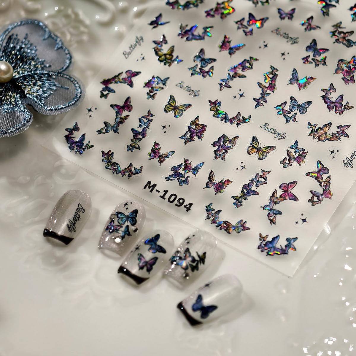 Butterfly Nail Art Stickers Holographic Nails Decals 5D Embossed Nail Sticker for Nails Art Dark Nail Stickers with Design for Women Girls Kid Manicure Supply Decoration Accessories