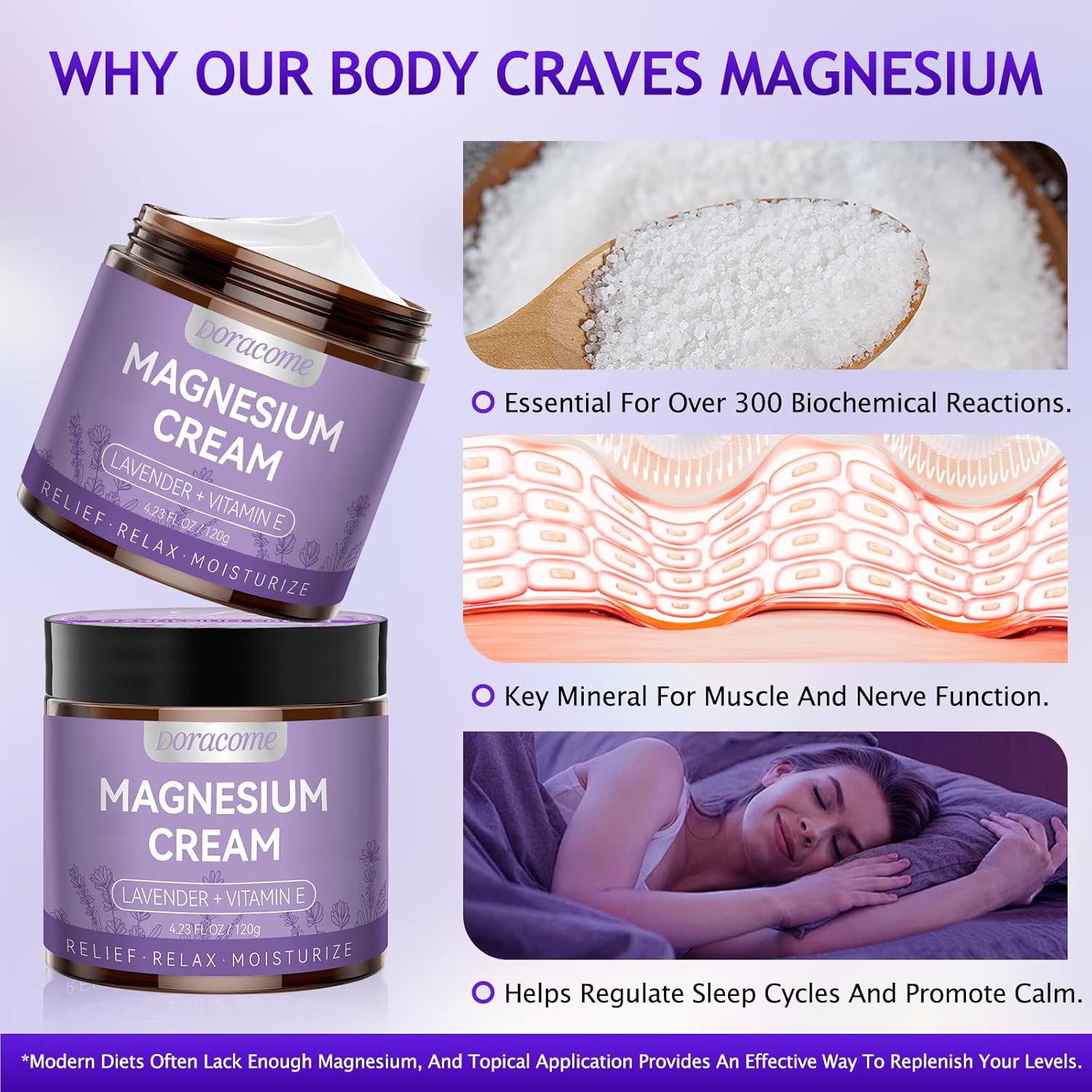 - Simple Formula & How to Use — Magnesium with skin-nourishing moisturizers; Unscented or Light Lavender option. Apply to clean, dry skin 1–2× daily.