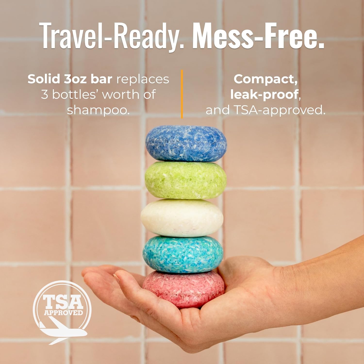 - TRAVEL-FRIENDLY, ZERO WASTE DESIGN: Compact, solid, TSA-approved shampoo bar; easy to pack and mess-free for trips, gym bags, or minimalist routines