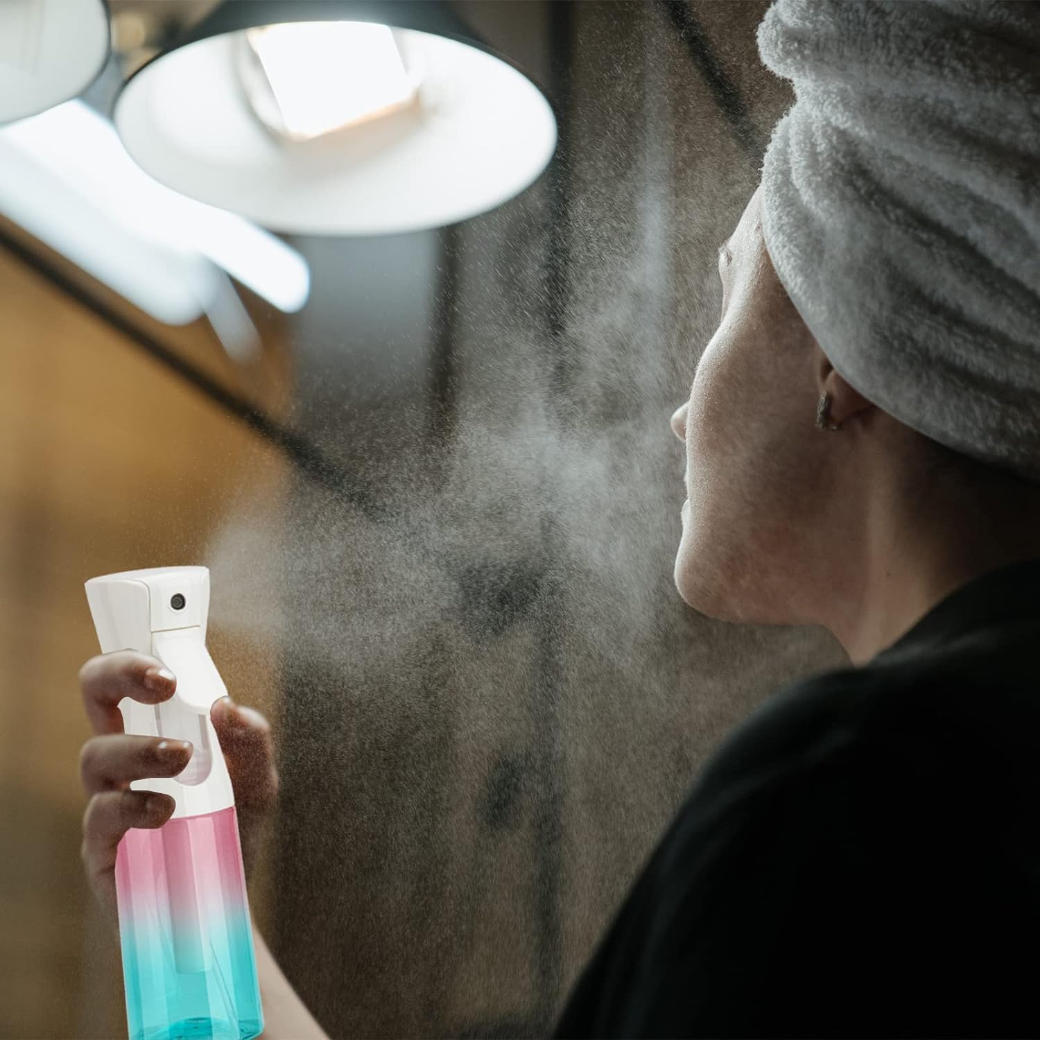 Spray Bottle for Hair (10.15OZ /300ML) Continuous Ultra Fine Mist Sprayer for Hair, Salons, Barber, Plants, Skin Care, Cleaning Red Blue Gradient