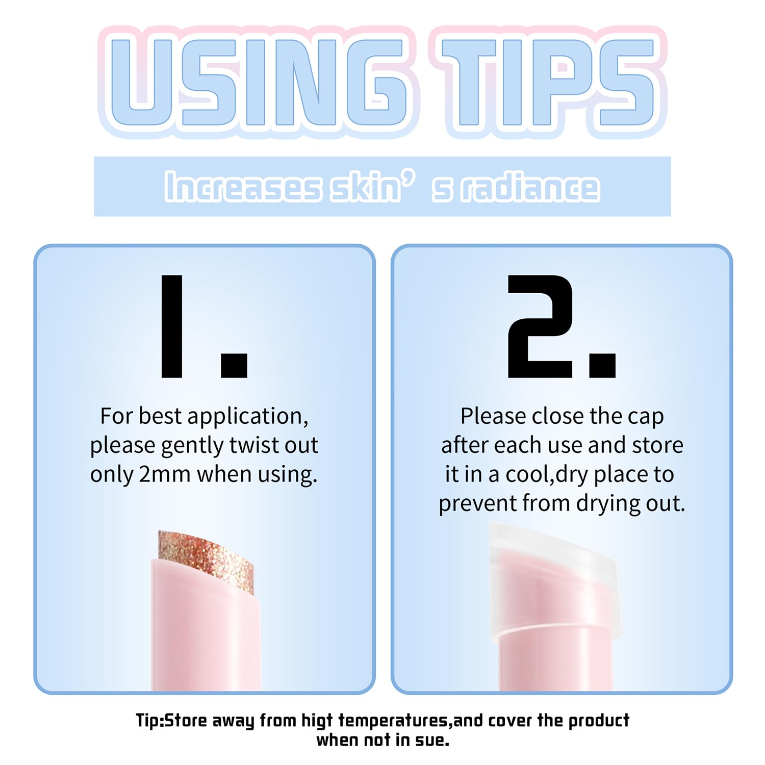 • Using Tips: 1. For best results, twist out only 2mm of the product during use to prevent breakage. 2. Always close the cap tightly after each use and store in a cool, dry place to maintain product quality. Tip: Avoid high temperatures and keep the cap securely closed when not in use to prevent drying out.