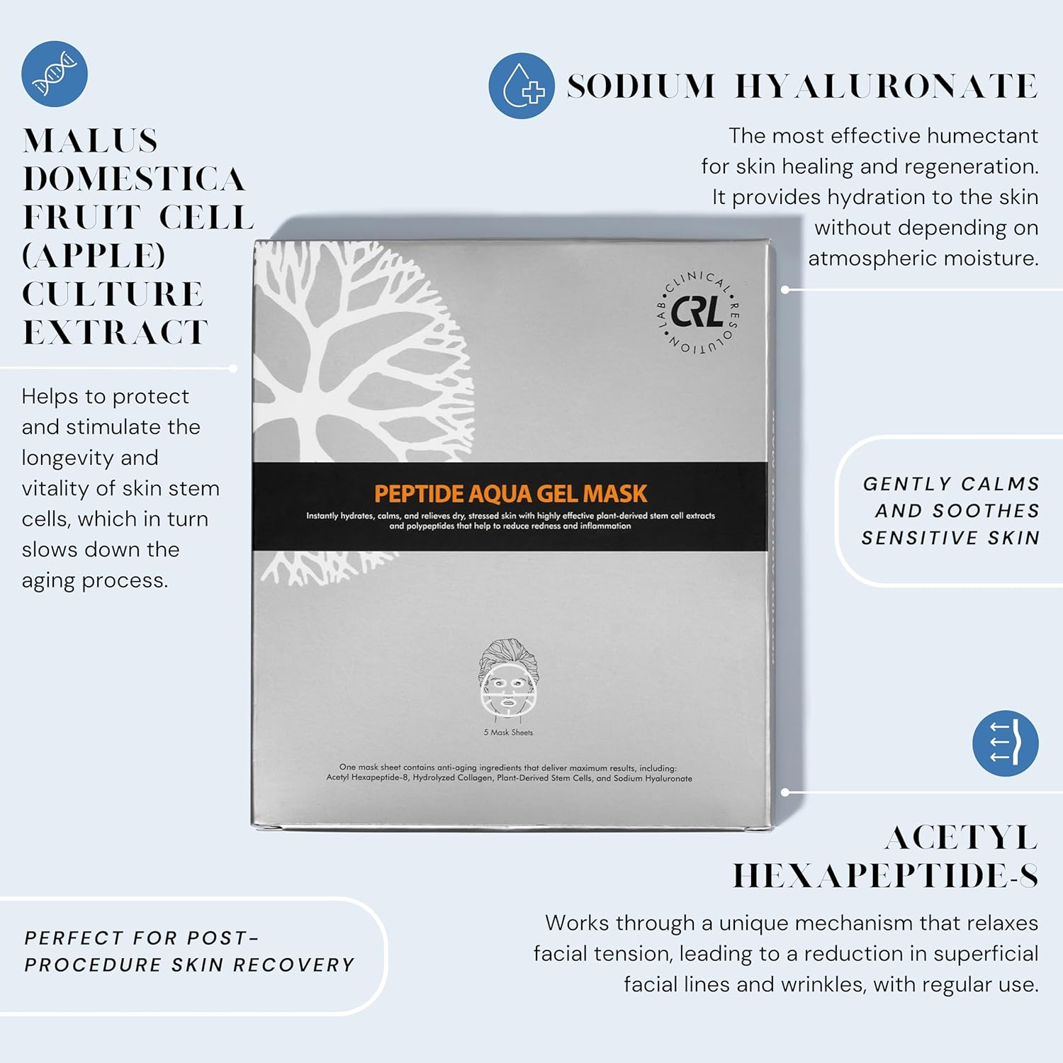 Clinical Resolution Peptide Aqua Gel Mask Instant Hydration, Soothing, Cooling Post-Treatment & Microneedling Relief, 15 Single-Use Masks (3 Boxes, 5 per Box)