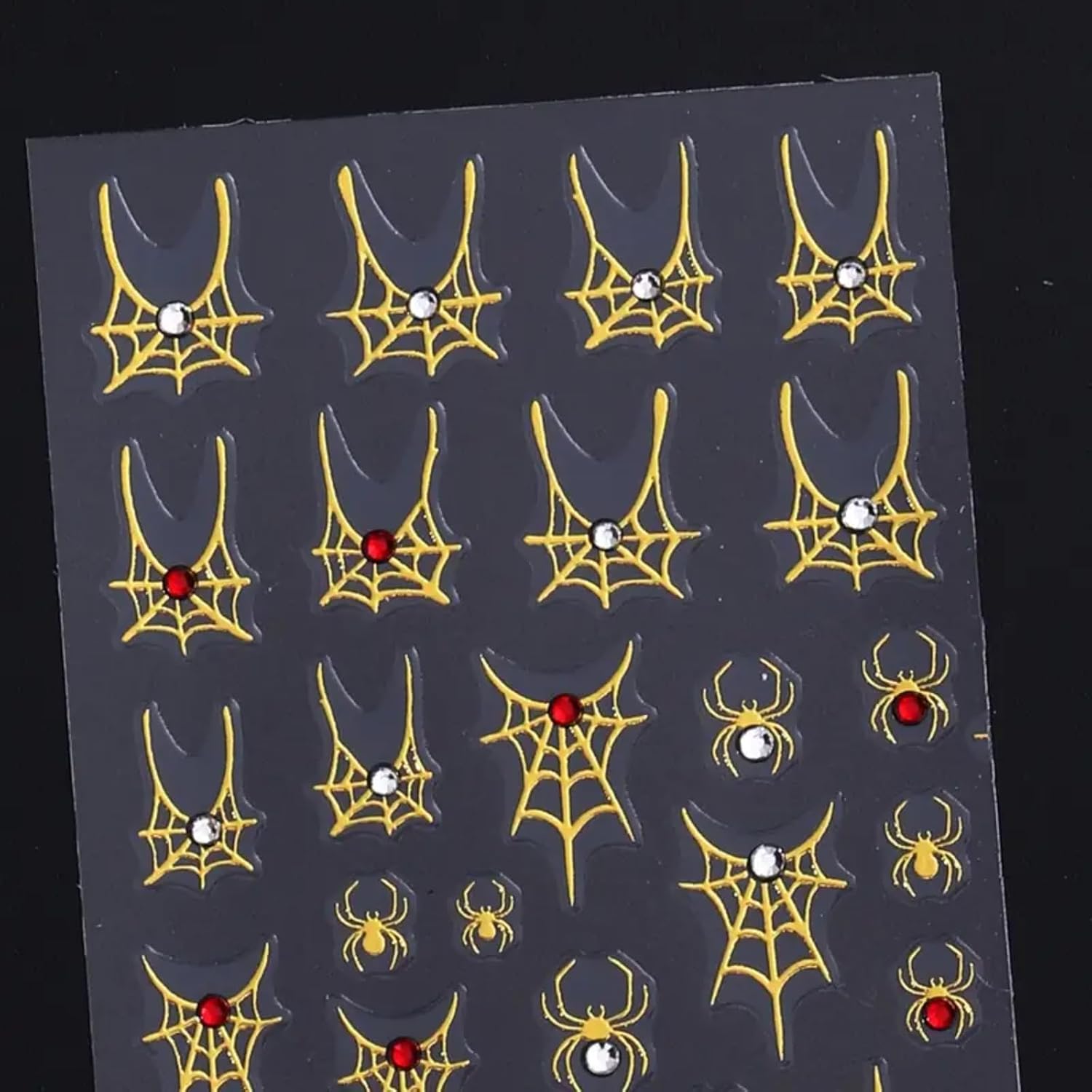 Halloween Nail Art Stickers Decals 4PCS Golden Spider Web Spider Nail Decals with Rhinestone White Red Crystal Spider Web Spider Nail Stickers Bow Heart Halloween Nail Art Supplies for Women Manicure