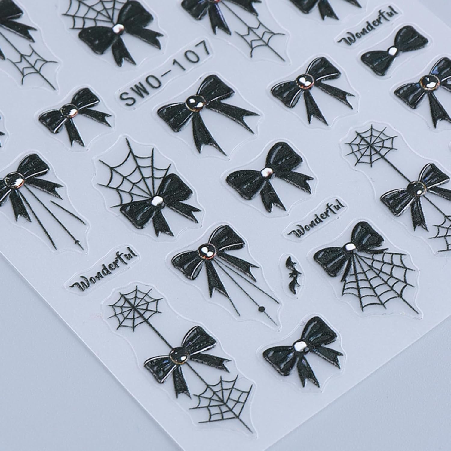 2Pcs Halloween Nail Art Stickers Decals 5D Embossed Halloween Spider Web Nail Decals Black Spider Web Bow Pattern Nail Designs Y2K Style Nail Supplies for Women Manicure Tip Decorations Accessories