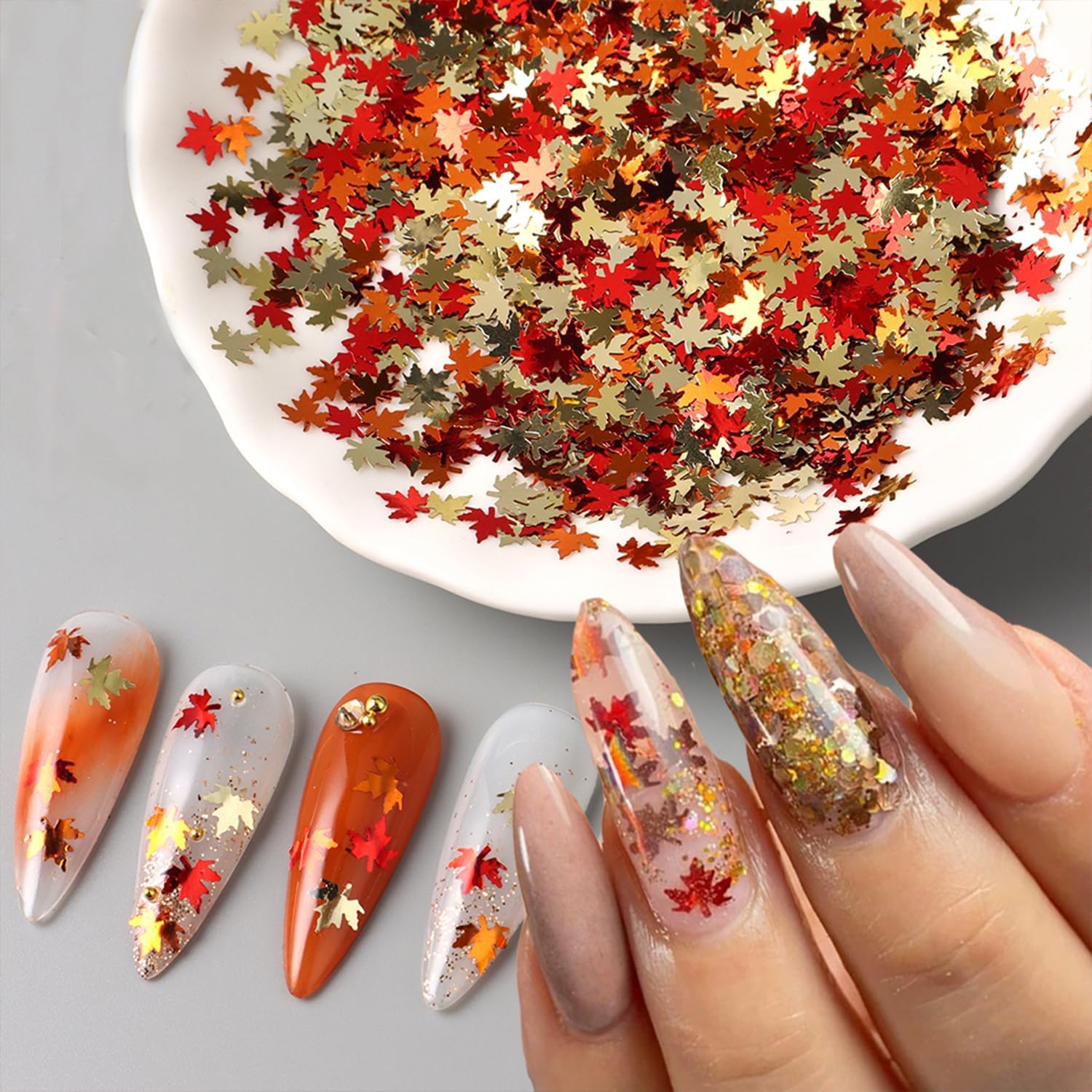 - Colorful Maple Leaf: 1Bag of 3D fall nail glitter sequins Thanksgiving nail decals , easy for your fall nail art design